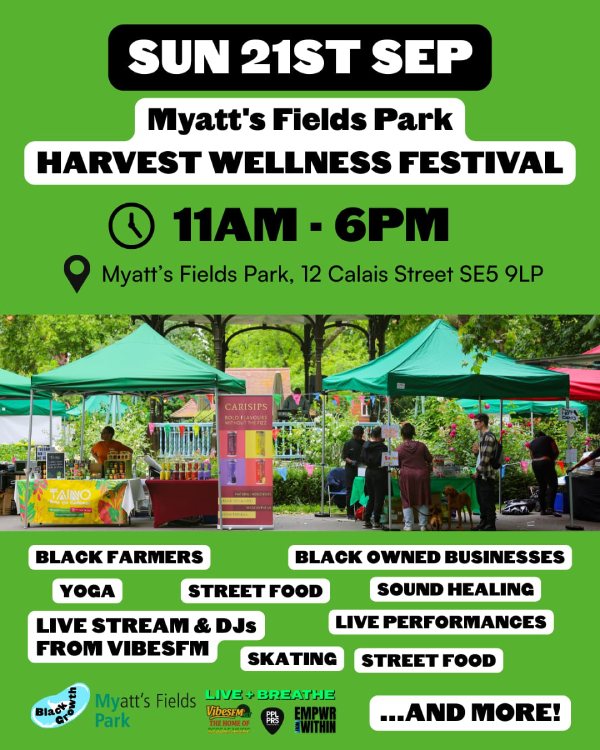 Black Growth CIC (formerly Black Farmer’s Market CIC) is proud to host our 5th Black Farmer’s Market — and this time, we’re celebrating the Harvest season and Wellness in the beautiful surroundings of Myatt’s Fields Park!